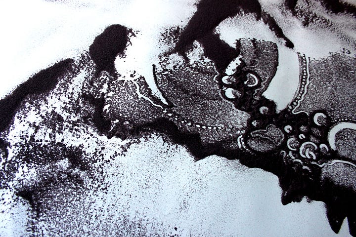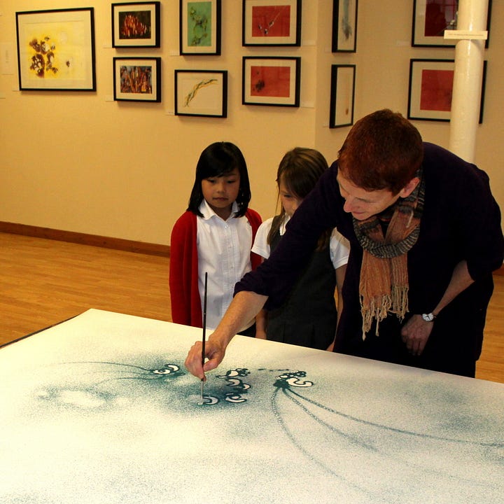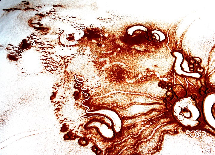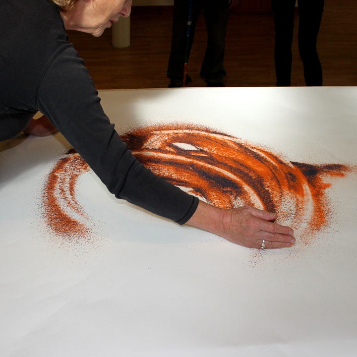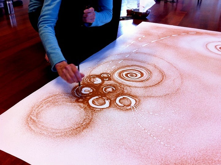 Sand painting is fascinating. Impermanent. I suppose part of its beauty is in the fact that it doesn't stay.