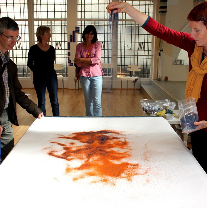 I did it as a performance in a shopping centre, I took it to a workshop. I hate performing but for some reason I was able to give myself over to the unpredictability of the flowing silica grains, as curious as anyone watching about what was going to happen next.
