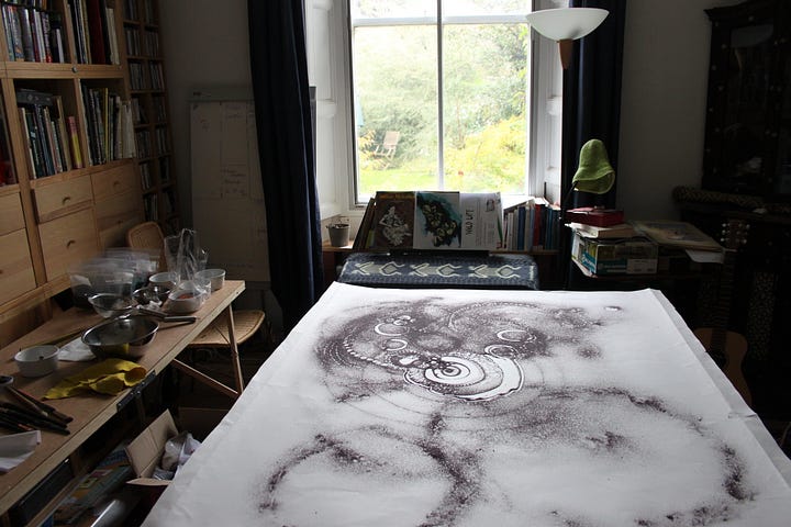 In Dancing Cells I talked about my fascination with biological forms and the energies of life, which I realised must have begun with the electron microscopy images shown to me by my biologist father. I wrote before that about my mysterious conversation with some lichen on a branch at the age of 19, and my later delight at discovering that China and India both had painting traditions which prioritised creating the feeling/breath of life, rather than striving for technically accurate representation.